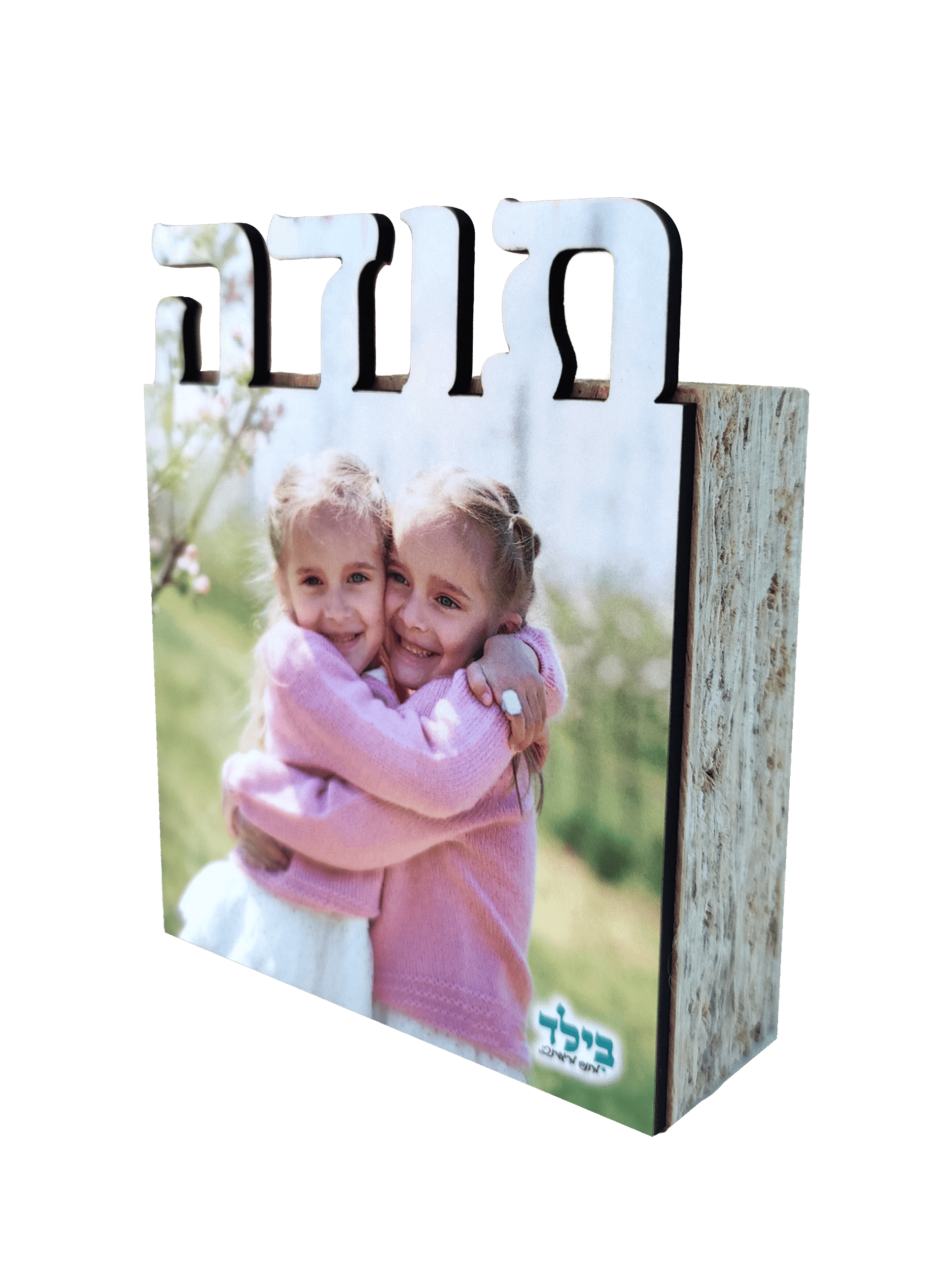 בילד מציגה בפניכם מתנה מקורית! הדפסת תמונה אישית על עץ מבריק איכותי עם חיתוך מיוחד בלייזר של- כל כיתוב שרק תרצו בראש העץ. מחובר לבלוק מעץ מלא. הכירו את הבלוק שלנו- הבלוק הכי איכותי בארץ. לא דוהה, לא מתקלף!