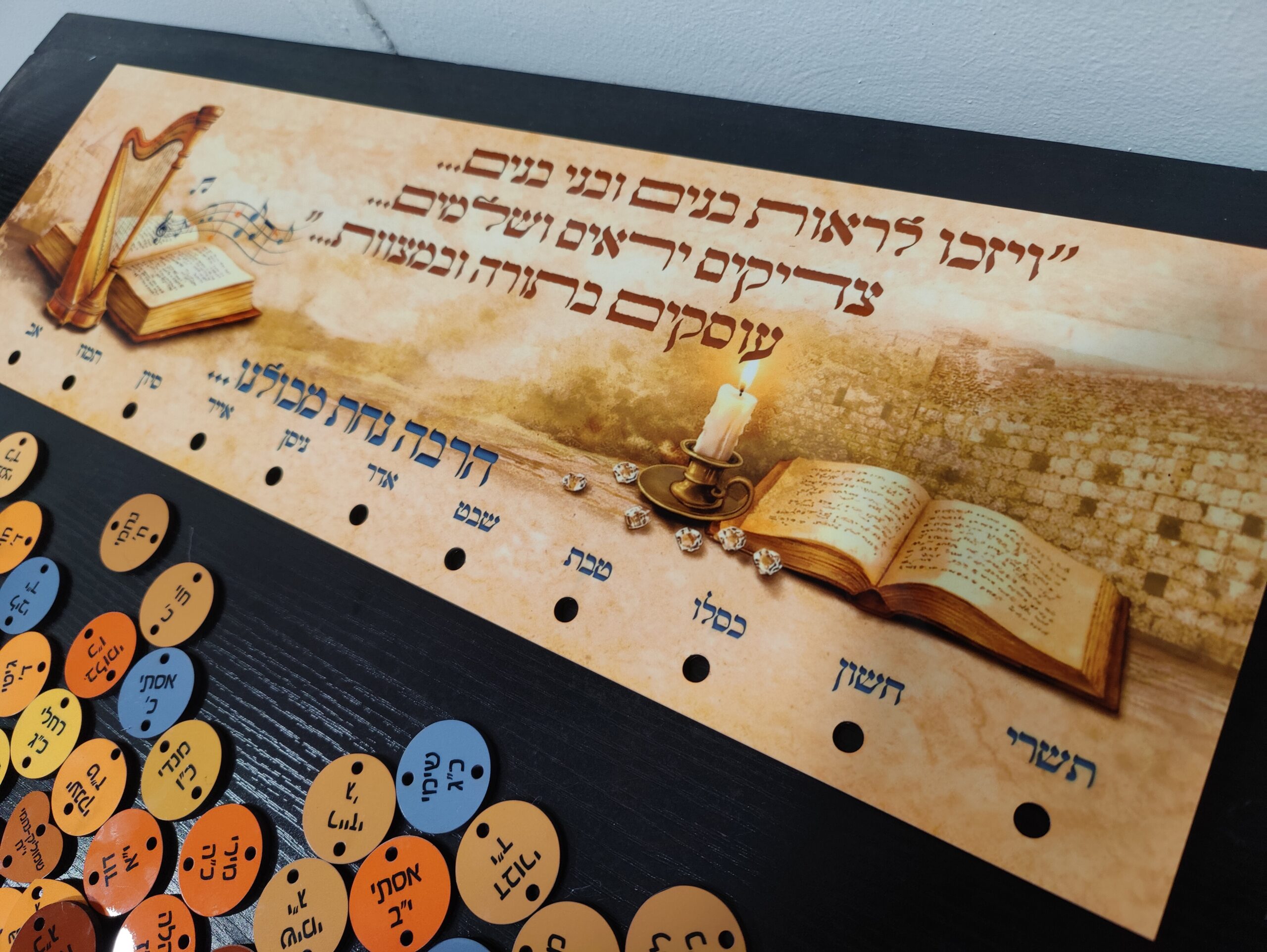 לוח בעיצוב יהודי אוטנטי עם ברכת ויזכו המפורסמת והמרגשת